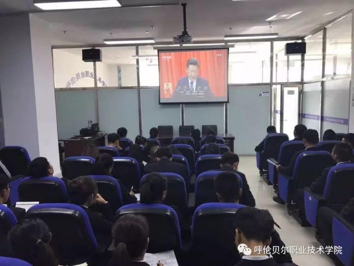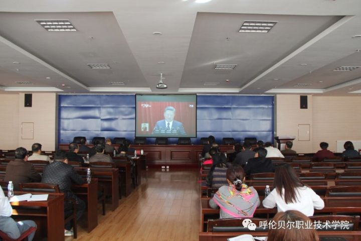 喜庆十九大 呼伦贝尔职业技术学院将收看党的十九大开幕盛况作为全体党员干部过党的政治生活的一项重要内容,学院党委高度重视,提前安排部署,分层次组织收看。学院党委书记王广利,党委副书记、院长张廷,党委委员、副院长张建华以及其他党委委员、中心组成员、机关党员干部和思想政治课全体教师在学院九楼报告厅共同收看大会开幕;各党总支(直属支部)根据实际情况,采取多种形式,组织本部门党员干部利用视频、网络等各方式集中收看大会开幕;学院团委组织学生干部、学生党员、入党积极分子在会议室集中收看大会开幕;各系团总支组织本系学生代表集中观看大会开幕直播。