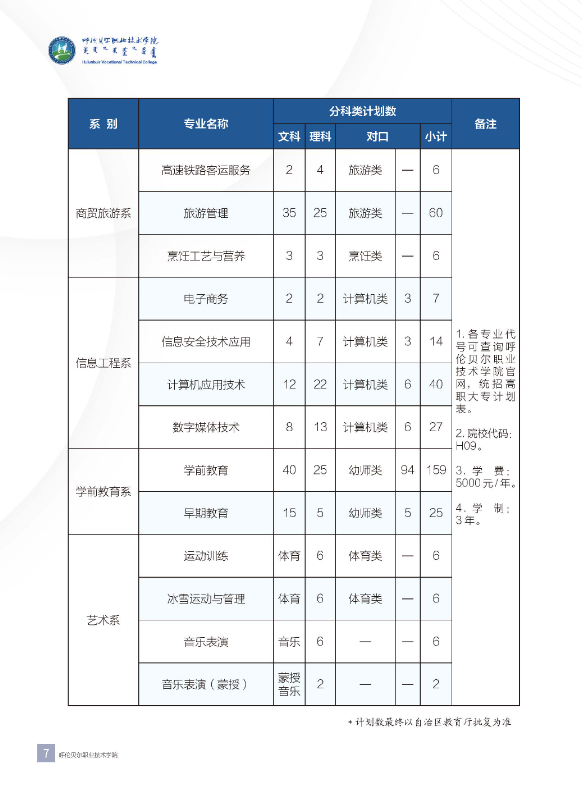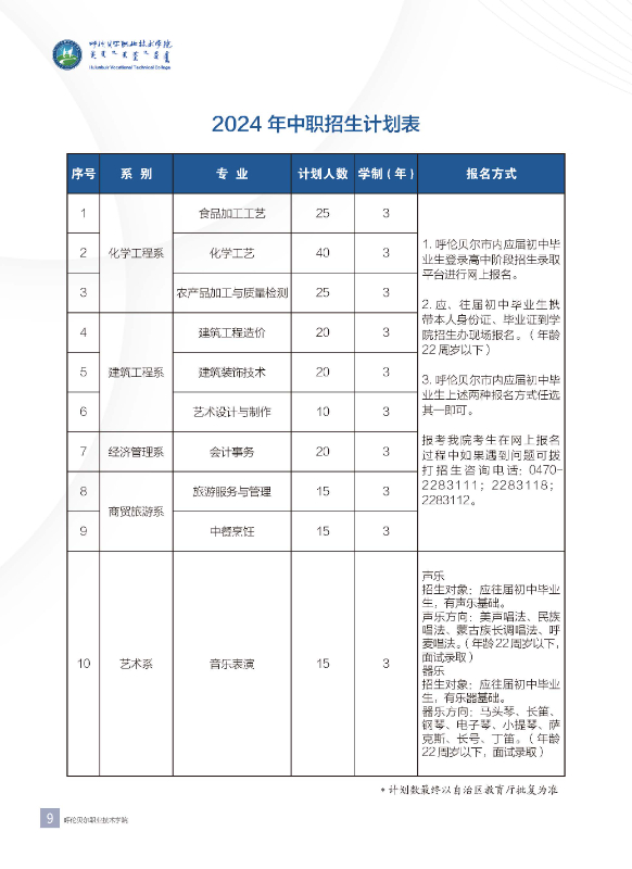 2024年呼伦贝尔职业技术学院各系招生简章