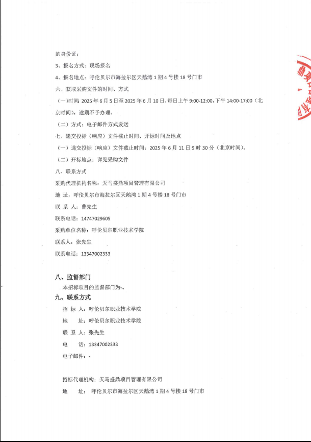 呼伦贝尔职业技术学院设备采购项目询价公告